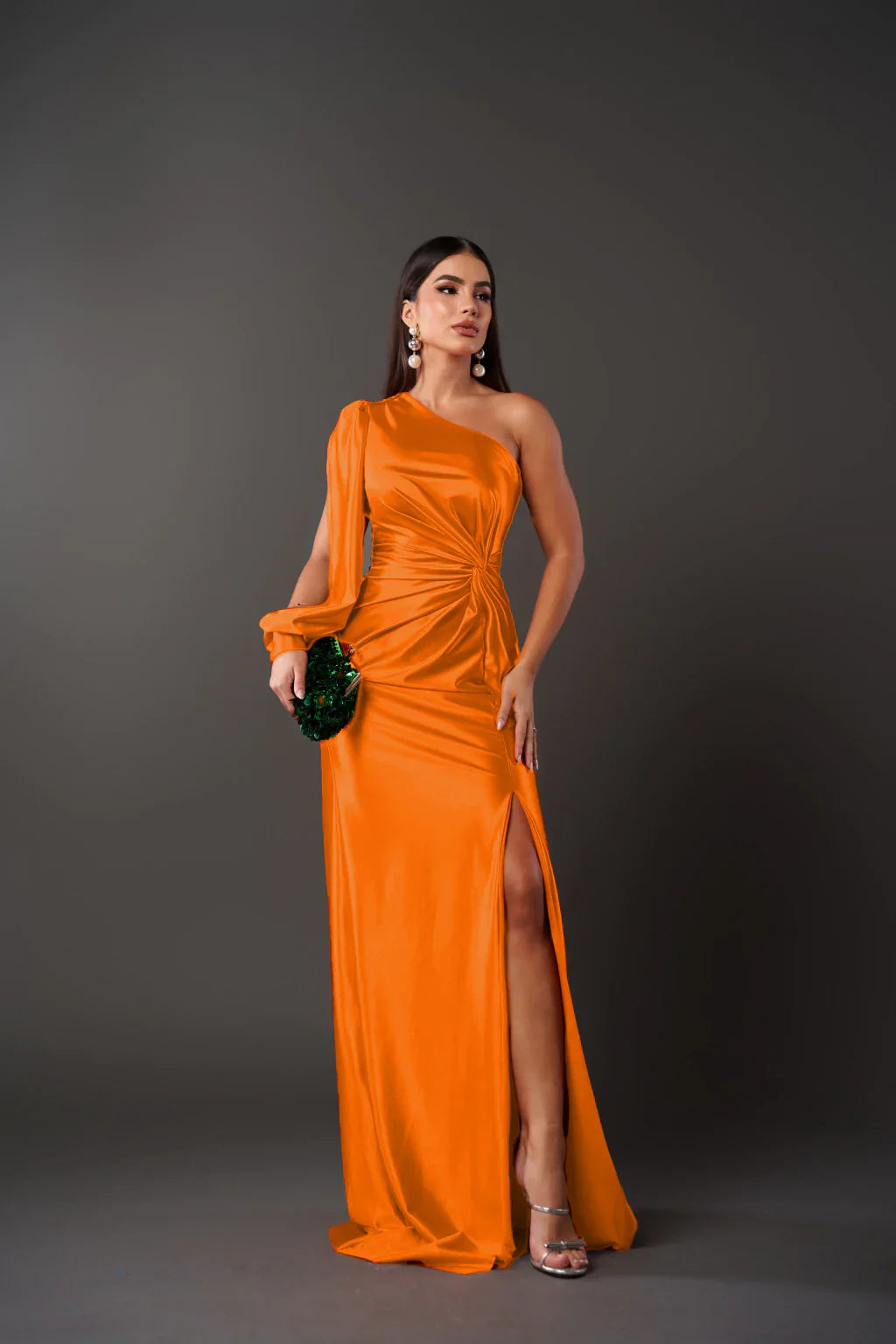 Questo elegante Abito Gracia è perfetto per le tue cerimonie. Grazie al suo taglio in monospalla e lo spacco, ti farà sentire elegante e raffinata. È ideale per le occasioni speciali, come matrimoni o feste. Aggiungi un tocco di classe al tuo outfit con questo abito.