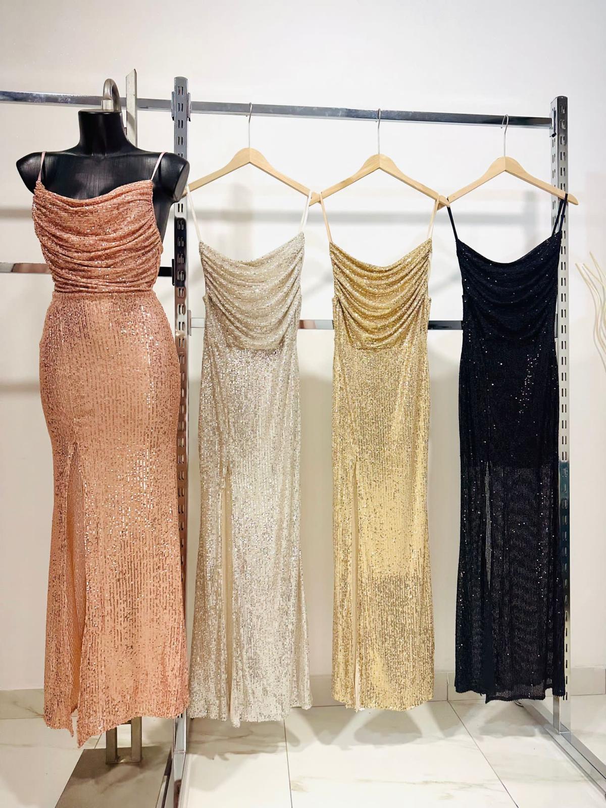 Questo abito Luxury in pailettes unisce eleganza e sensualità con un design moderno e raffinato. Perfetto per chi desidera distinguersi con stile, valorizza la silhouette grazie alla sua vestibilità curata e ai dettagli scintillanti che catturano la luce in ogni movimento. Una scelta sofisticata per occasioni speciali e serate di classe.