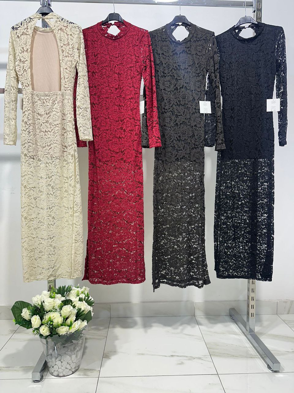 Questo abito elegante in pizzo combina raffinatezza e sensualità, con una schiena scoperta che valorizza la silhouette e maniche lunghe che aggiungono un tocco di sofisticatezza. Perfetto per occasioni speciali, il tessuto in pizzo offre una texture delicata e un design senza tempo, garantendo comfort e stile in ogni movimento. Idealmente pensato per chi cerca un capo esclusivo che unisca charme e seduzione con cura sartoriale.