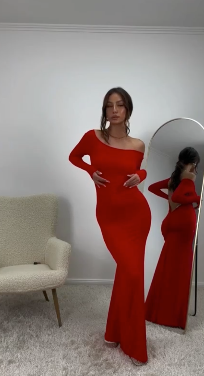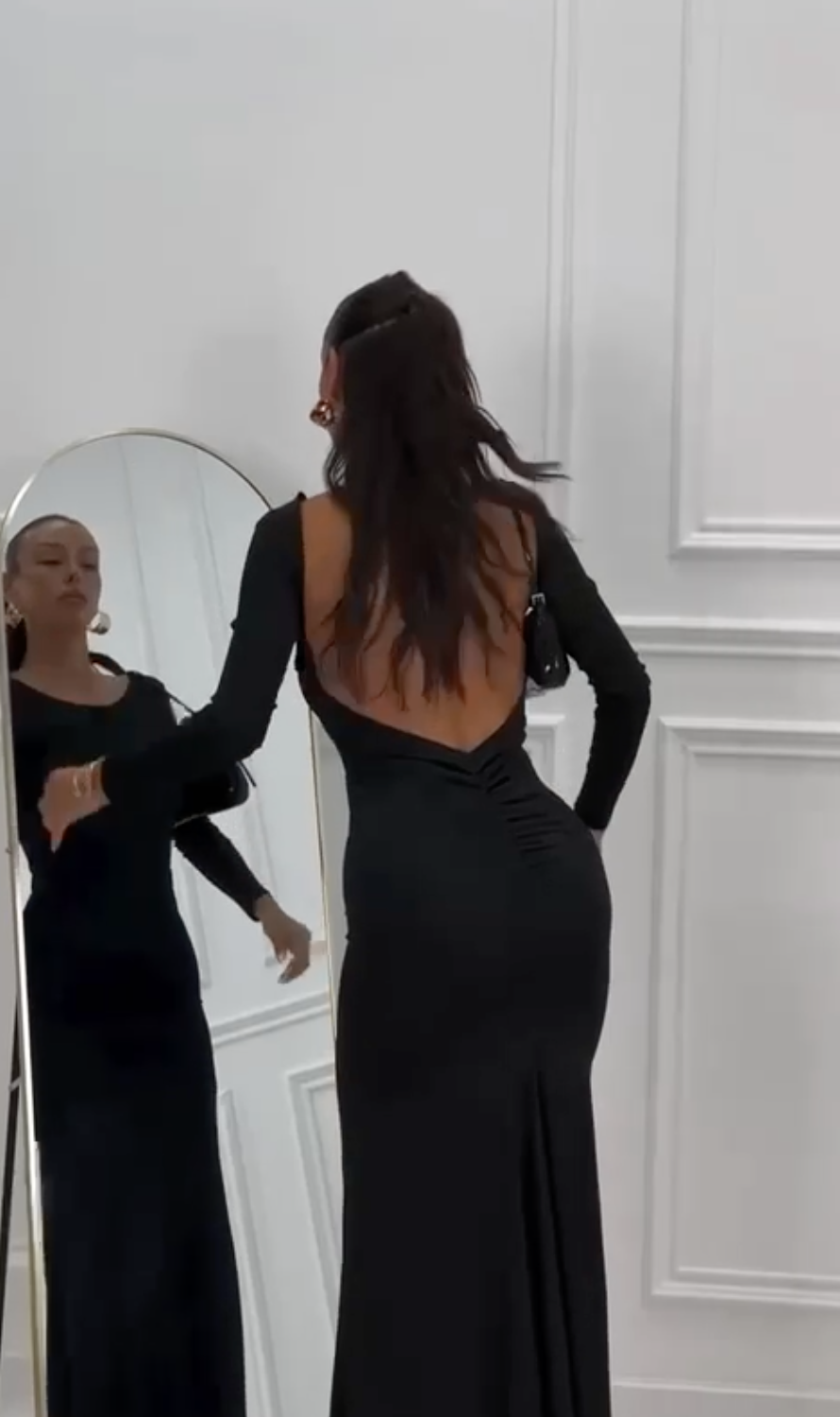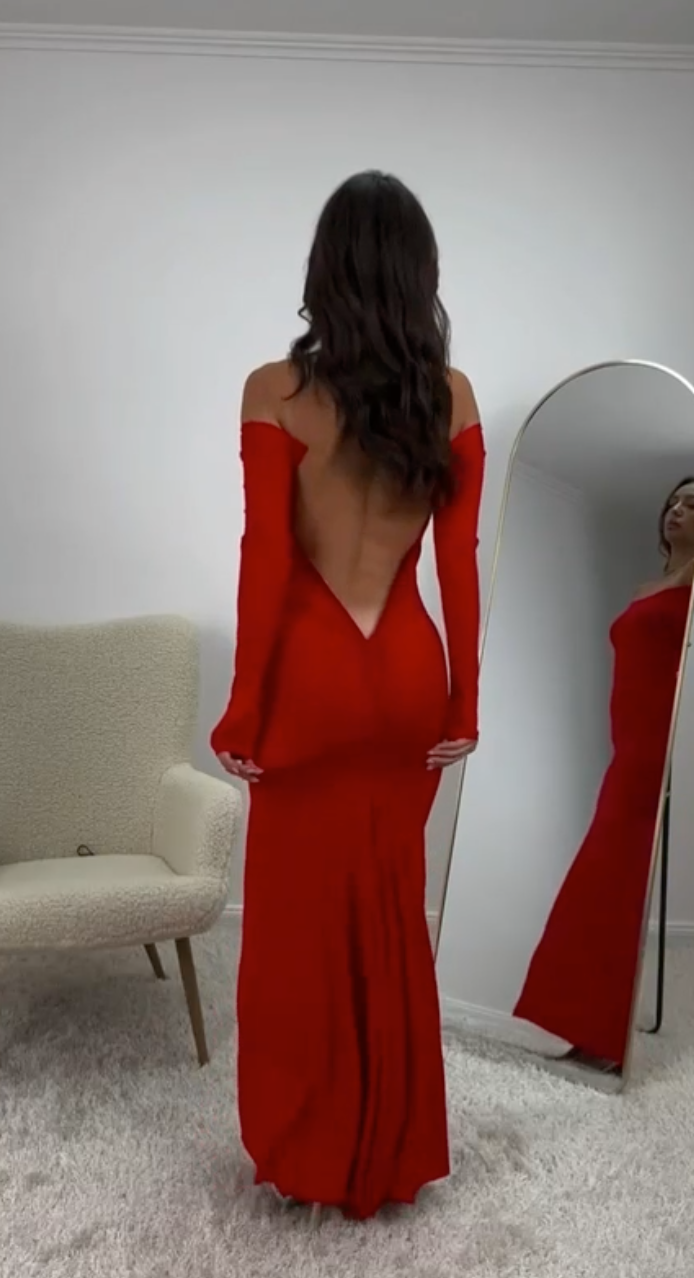 Esalta la tua femminilità con l'abito sirena elegante e sensuale. Il taglio aderente si adatta perfettamente al tuo corpo, mentre la schiena scoperta aggiunge un tocco di sensualità. Vivi l'eleganza e la bellezza con questo abito unico, perfetto per occasioni speciali.