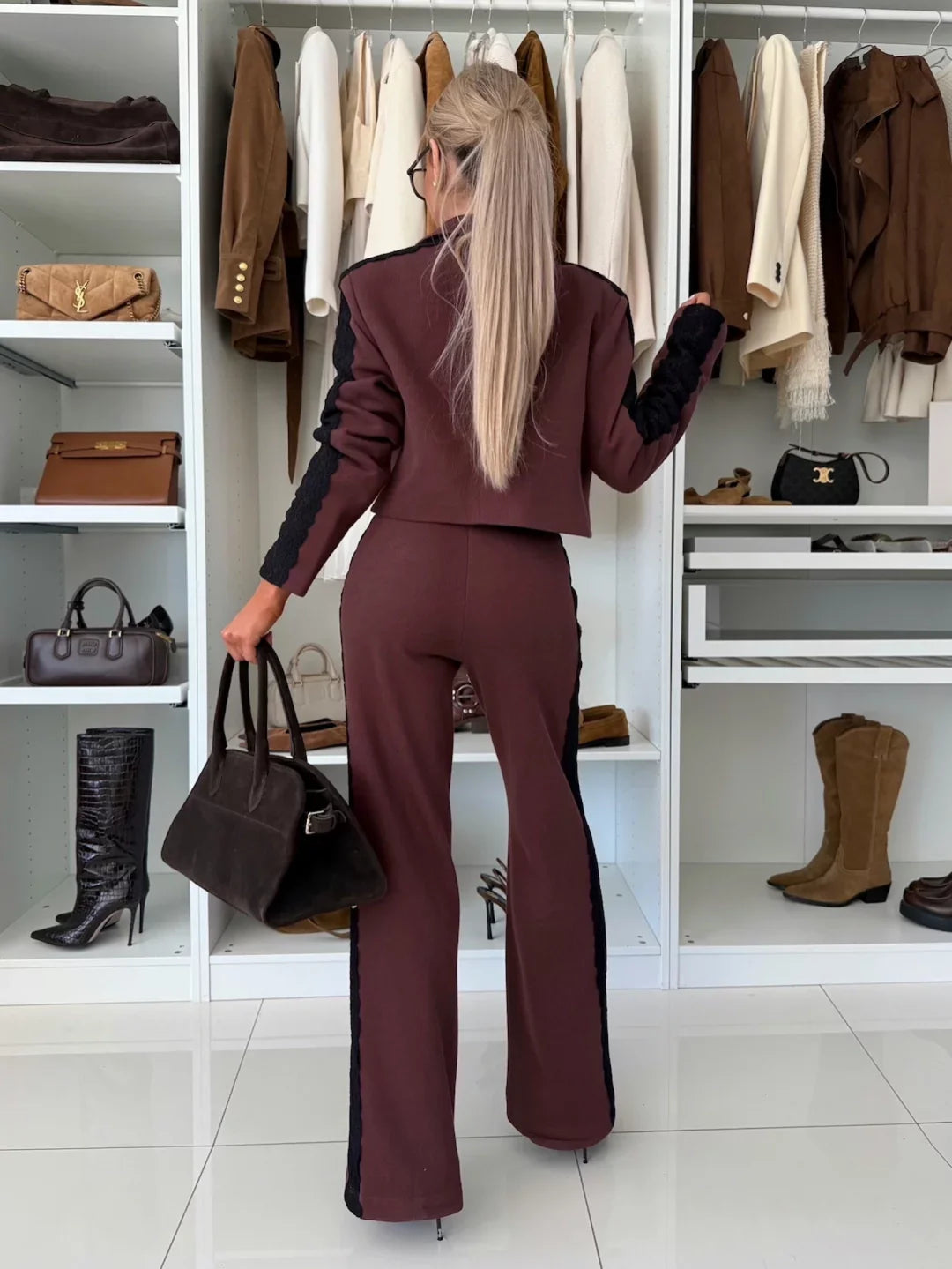 Con il Completo Bailera aggiungi al tuo guardaroba un mix perfetto di eleganza e stile moderno. La giacca dal taglio corto presenta un design distintivo con tasche sul busto, doppio bottone e dettagli a contrasto sulle spalle e maniche, per un look sofisticato ma fresco. I pantaloni, con vita elastica, strisce laterali e gambe svasate, offrono comfort e un tocco di originalità. Scegli il Completo Bailera per esprimere sicurezza e stile in ogni occasione, dal meeting importante all’uscita informale, senza rinunciare alla raffinatezza.