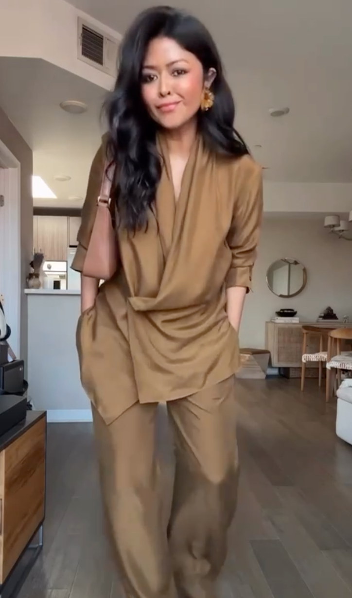 Completo Giovanna è un outfit sofisticato che unisce eleganza e stile contemporaneo. Il pantalone dal taglio raffinato si adatta perfettamente alla silhouette, mentre la camicia con chiusura laterale aggiunge un tocco distintivo e moderno. Ideale per occasioni formali o eventi importanti, questo completo garantisce comfort senza rinunciare a una presenza impeccabile.