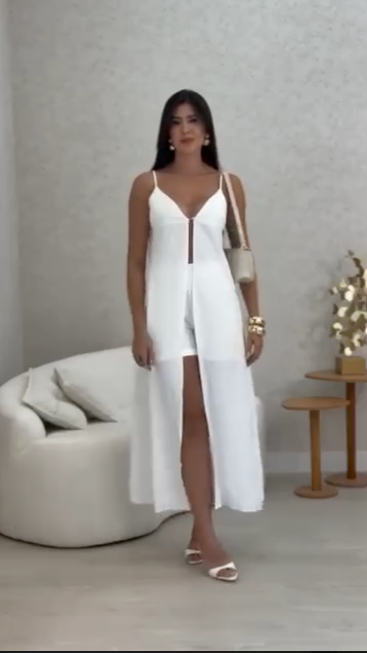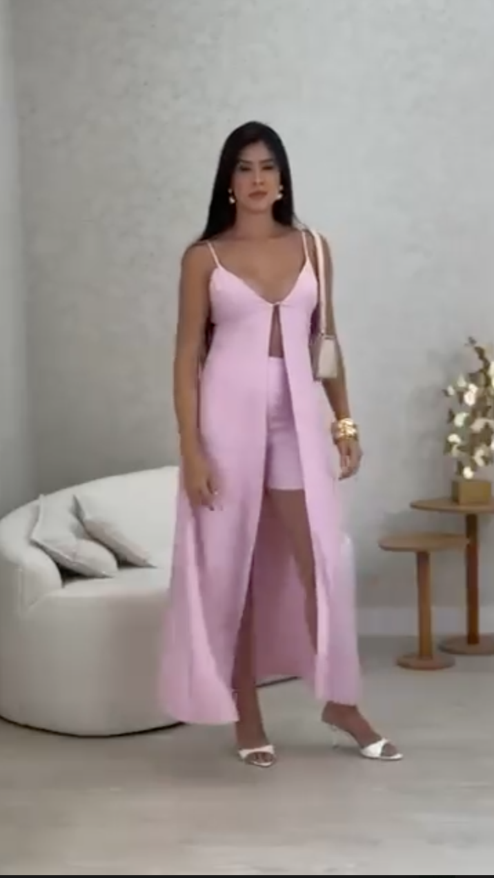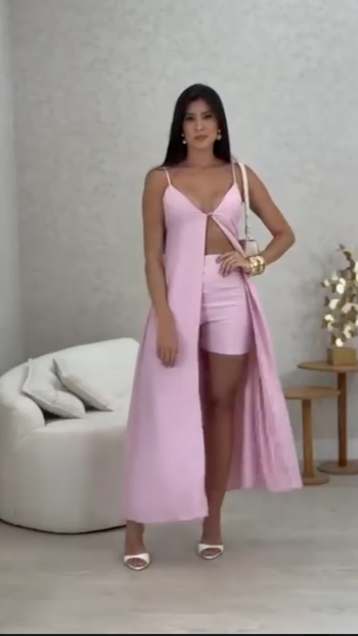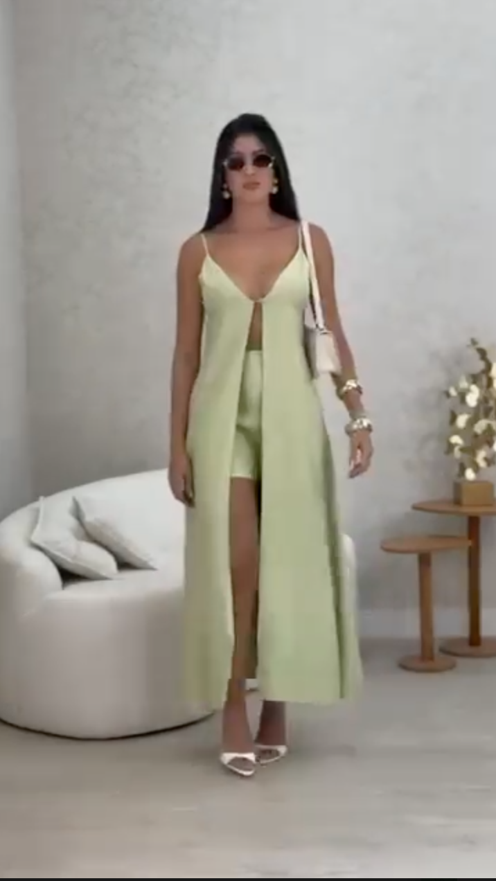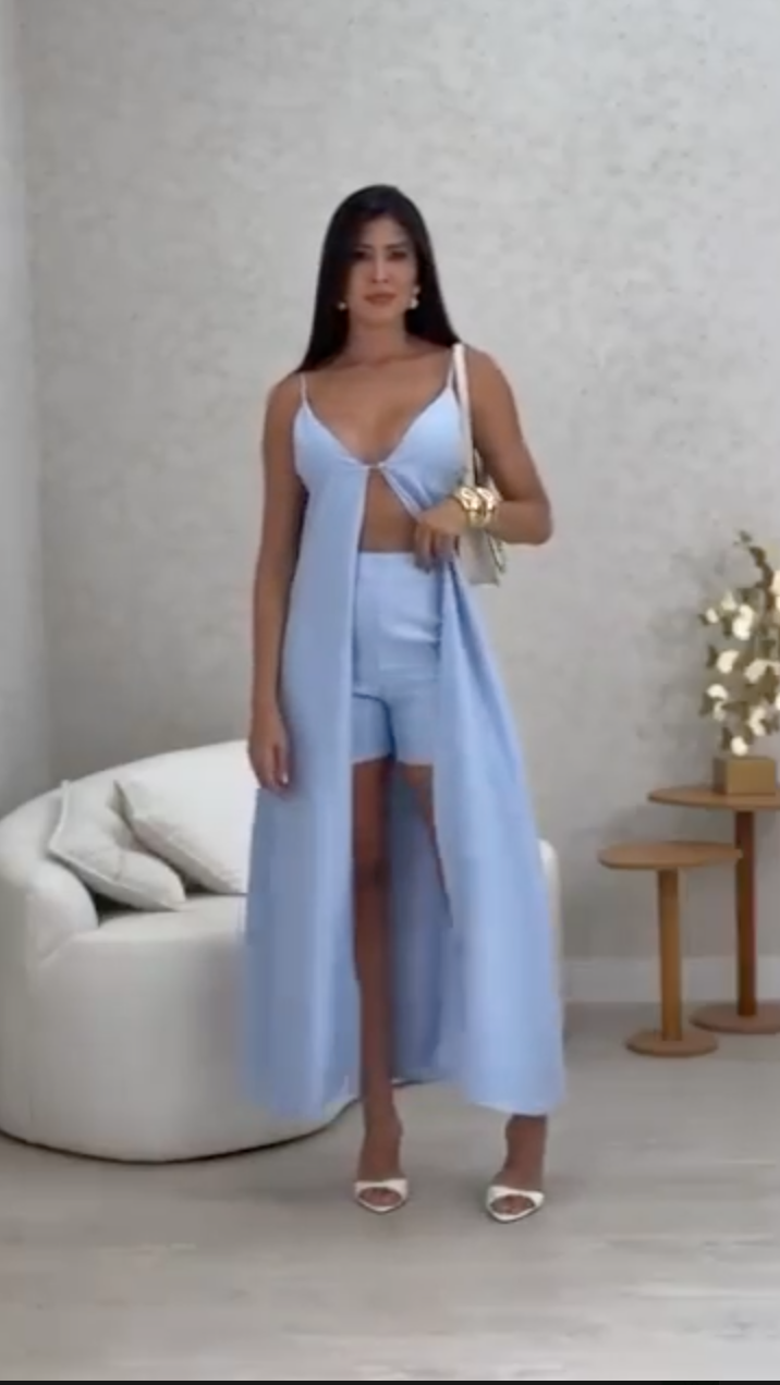 Il Completo Sky Line unisce eleganza e stile moderno, composto da un pantaloncino e un top coordinati. Perfetto per chi cerca un outfit raffinato ma allo stesso tempo alla moda, ideale per occasioni casual-chic o eventi estivi. La combinazione valorizza la silhouette offrendo comfort e un look contemporaneo.
