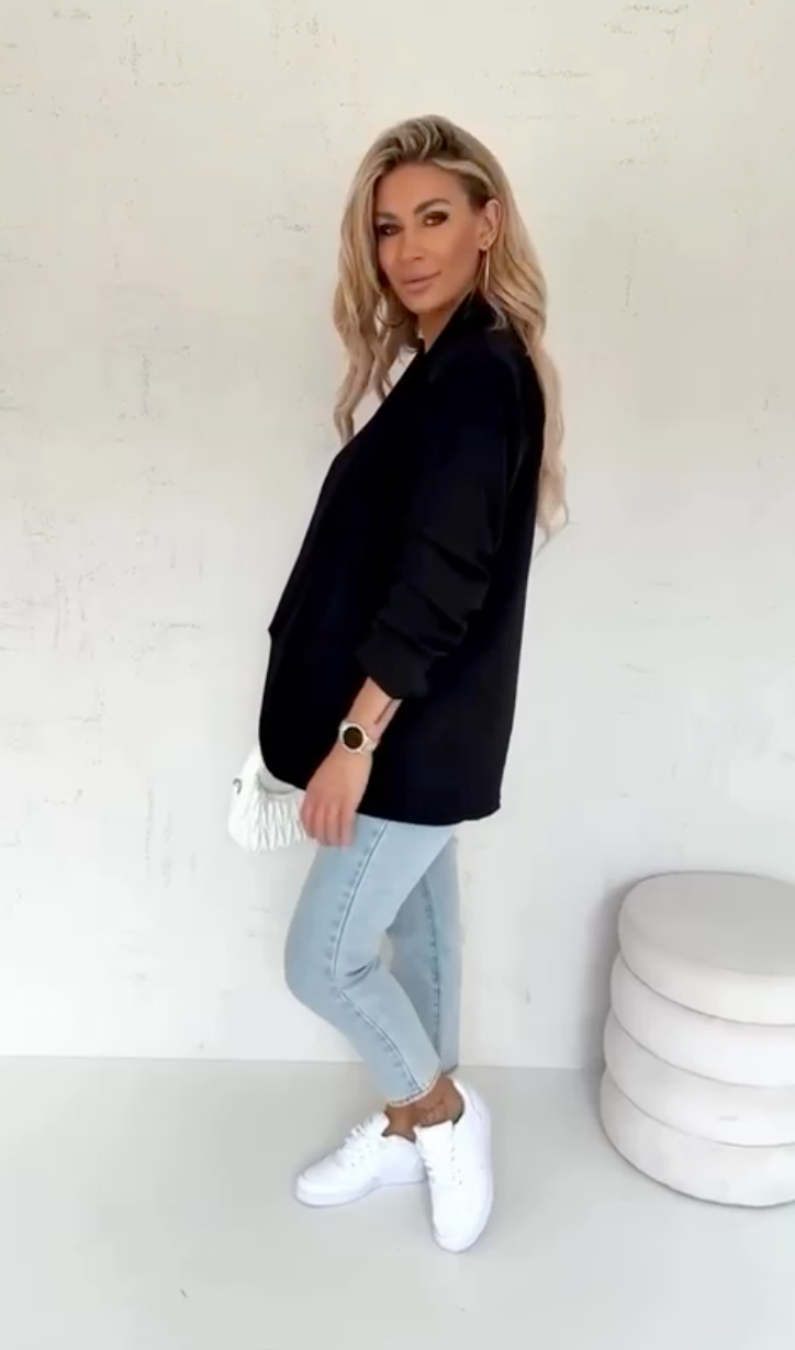La Giacca Lania unisce raffinatezza e comfort in un capo impeccabile. Il drappeggio alle maniche aggiunge un dettaglio sofisticato, mentre l'assenza di chiusure dona un look essenziale e pulito. Internamente foderata, garantisce una vestibilità confortevole e una finitura di qualità superiore, ideale per occasioni formali ed eleganti.