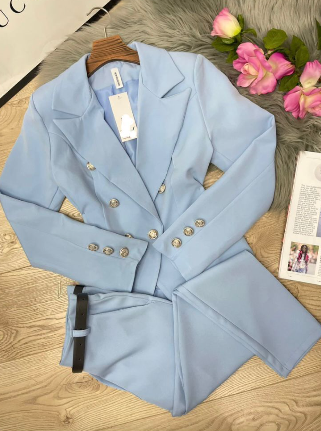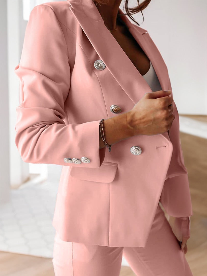 Goditi l'effetto sofisticato e alla moda del nostro Tailleur Mike. Con dettagli in bottoni, il pantalone dal taglio classico e la giacca unica e classica ti faranno sentire elegante e sicura di te stessa. Perfetto per ogni occasione, la sua eleganza ti farà risplendere.
