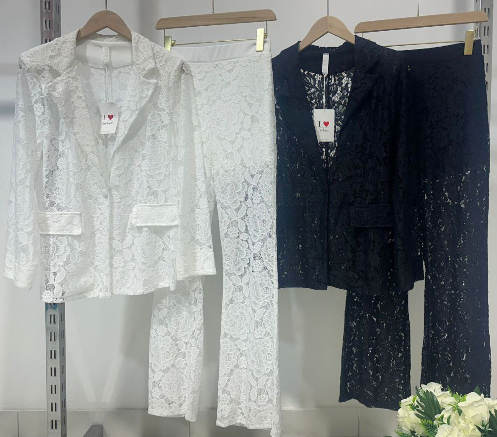 Il tailleur in morbido pizzo è l'incarnazione perfetta di eleganza, sensualità e modernità. Realizzato con un delicato pizzo di alta qualità, questo capo trasforma la tradizionale silhouette del tailleur in un'espressione sofisticata di femminilità, con un tocco contemporaneo che non passa inosservato.