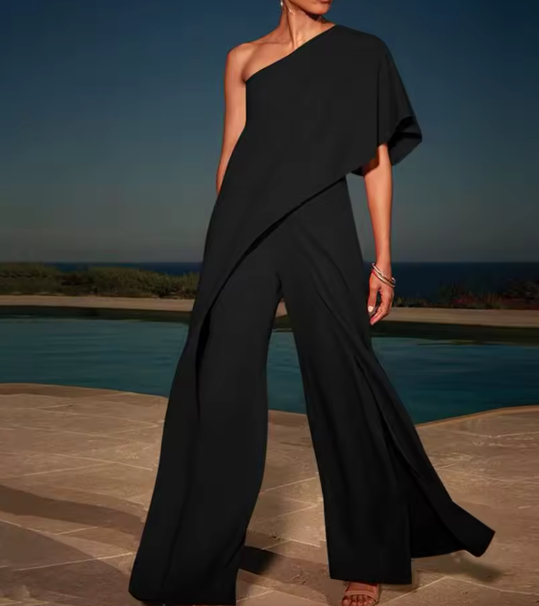 Questa tuta intera elegante con monospalla è perfetta per un'occasione speciale o una serata fuori. La sua elasticità e il dettaglio del volant la rendono comoda e di tendenza. Aggiungete un tocco di eleganza al vostro guardaroba con la Tuta Gisella.